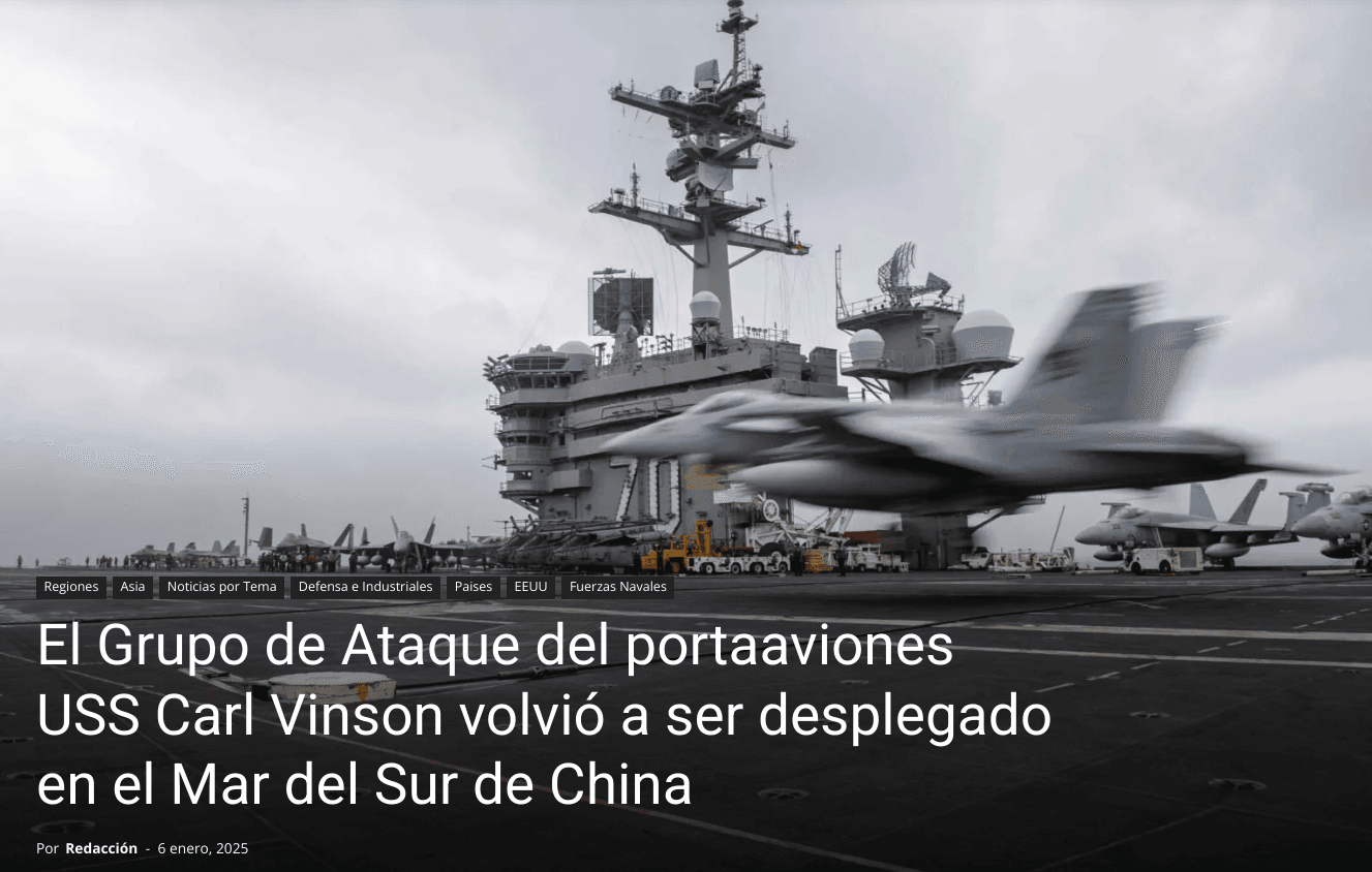 El Grupo de Ataque del portaaviones USS Carl Vinson volvió a ser desplegado en el Mar del Sur de China Por Re