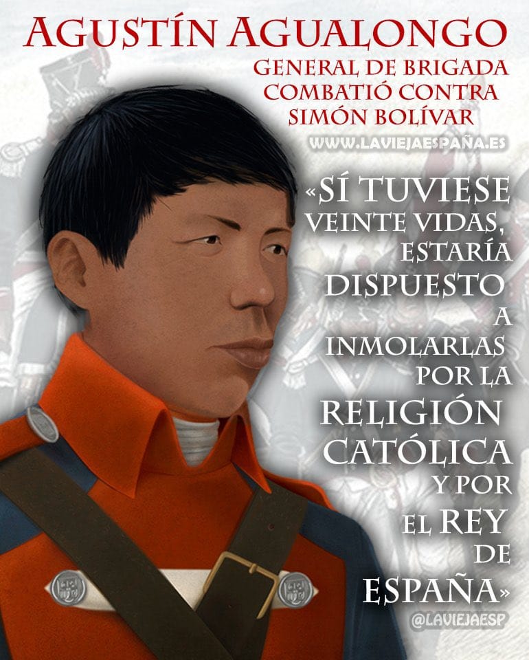 En el virreinato de Nueva a Granada tocaba a su fin la decidida resistencia de la zona más realista, la región sur, en torno a las ciudades de Popayán y Pasto. El último líder de la resistencia fue el coronel indígena Agustín Agualongo. De humilde origen fue voluntario realista desde 1811. Ascendió rápidamente por su valentía y su capacidad de liderazgo.