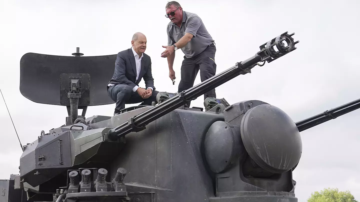 Hay una primera vez para todo, incluso para el canciller alemán, Olaf Scholz, que se subió a un tanque antiaéreo en el campo de entrenamiento militar de Putlos, al norte de Alemania.