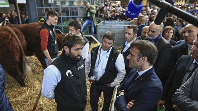 El presidente Emmanuel Macron se reúne con agricultores mientras visita la Feria Internacional de Agricultura durante la jornada inaugural en París, el 25 de febrero El...