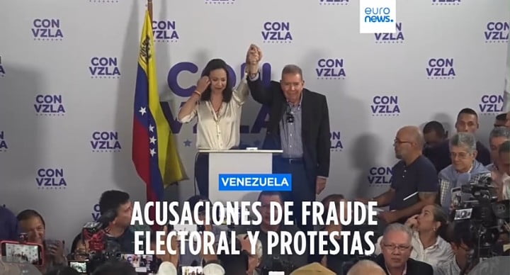 La oposición y gran parte de la comunidad internacional aún no ha reconocido el resultado de las urnas ante las acusaciones de fraude. El partido de María Corina Machado cuenta con más del 70% de las actas de votación.