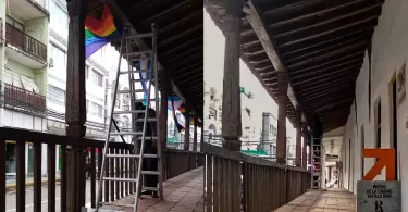 Este viernes a las 13:00 Hrs en el centro de Santa Cruz, el Museo Altillo Beni quitó banderas LGBT luego del reclamo de los vecinos de la zona. El lugar no tenía la autorización correspondiente para colocar esos símbolos, que aparecieron ahí un día antes.