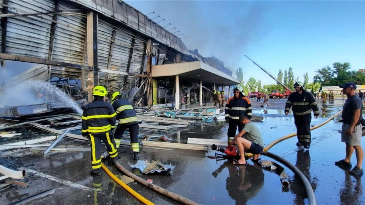 Los rescatistas trabajan en un centro comercial afectado por un ataque con misiles rusos, en Kremenchuk, en la región de Poltava, Ucrania, el 27 de...