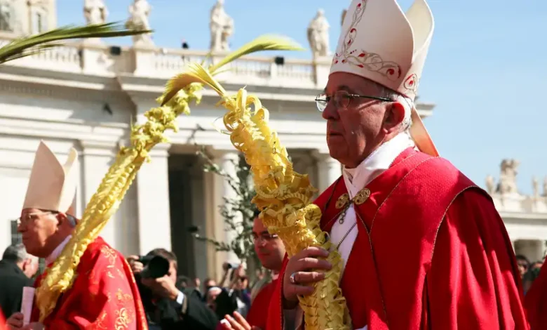 El Papa Francisco celebra la misa del Domingo de Ramos en la Plaza de San Pedro del Vaticano, el domingo 10 de abril de 2022 ...
