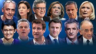Los carteles oficiales de la campaña de los candidatos a las elecciones presidenciales de Francia se exhiben en France Affichage Plus, el centro logístico desde el...