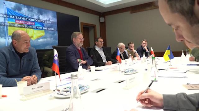 Zelenski junto a los primeros ministros de Polonia, Eslovenia y República Checa Los primeros ministros de Polonia, Mateusz Morawiecki, República Checa, Petr Fiala y Eslovenia, Janez Jansa, así...