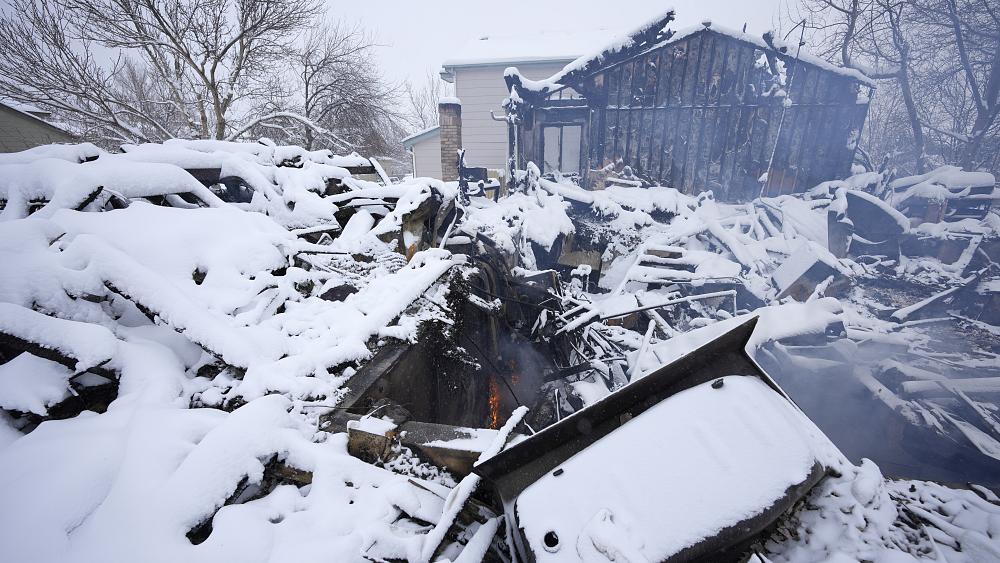 Restos del incendio cubiertos por la nieve – Derechos de autor David Zalubowski/ AP Photo Largas colas de coches para hacerse con estufas, agua potable o mantas en el...