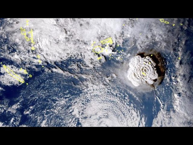 Derechos de autor AP/Japan Meteorology Agency La violenta erupción de un volcán submarino cerca de Tonga, en el Pacífico Sur, provoca un tsunami que ha hecho refugiarse...