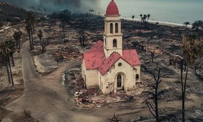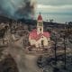 En medio de la devastación un templo católico permanece indemne verse rodeado por las llamas.