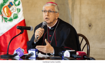 Un grupo de católicos se congregó pacíficamente frente a la casa del arzobispo de Lima para rezar un rosario en reparación al Inmaculado Corazón de María,...