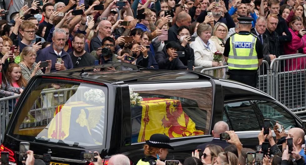 Vista general del ataúd de la reina Isabel II, en Westminster Hall, en el Palacio de Westminster, donde descansará hasta el funeral de Estado. En Londres,...