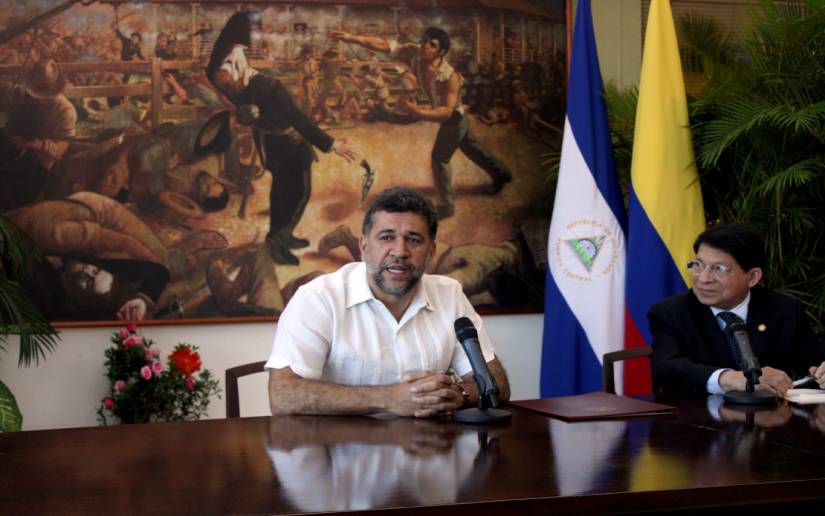 León Fredy Muñoz, embajador de Colombia en Nicaragua, lució una gorra y una pañoleta del Frente Sandinista de Liberación Nacional. León Fredy Muñoz, embajador de Colombia...