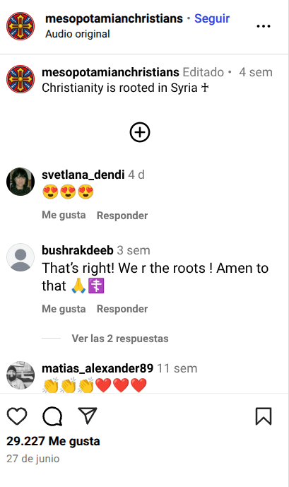 ReligiosasChristianity is rooted in Syria ♰Published 2 semanas ago on septiembre 22, 2025By GL Related Topics:Leave a Reply Cancelar la respuestaTu dirección de correo electrónico no será publicada. Los campos obligatorios están marcados con *Comentario * Nombre * Correo electrónico * Web Guarda mi nombre, correo electrónico y web en este navegador para la próxima vez que comente. Δ{{#message}}{{{message}}}{{/message}}{{^message}}Tu envío ha fallado. El servidor respondió con {{status_text}} (código {{status_code}}). Por favor, contacta con el desarrollador del procesador de este formulario para mejorar este mensaje. Más información{{/message}}{{#message}}{{{message}}}{{/message}}{{^message}}Parece que tu envío funcionó correctamente. Aunque el servidor ha respondido correctamente es posible que no se haya procesado el envío. Por favor, contacta con el desarrollador del procesador de este formulario para mejorar este mensaje. Más información{{/message}}Enviando…Top 5Actualidad3 días agoLAS CRUZADAS DE DIOSActualidad4 días agoEl castigo por protestar en las calles cubanas se endureceActualidad4 días ago«La batalla de Lepanto: La guerra que decidió el destino de Europa»Historia4 días agoLa Reina Isabel en su último testamento dijo que los indígenas debían ser hombres libres y muchos nativos estaban esclavizados por otros indígenasNacional4 días agoVer «Gustavo Petro ordenó compartir inteligencia militar con Nicolás Maduro.»Uncategorized4 días agoLas puertas de los cartujos