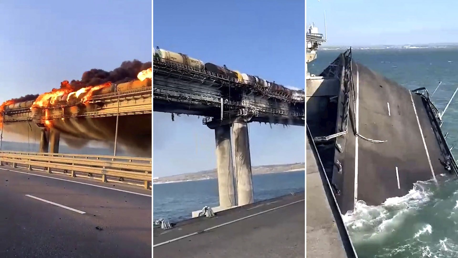 El puente de Crimea, símbolo de la anexión rusa de la península, gravemente dañado por una explosión