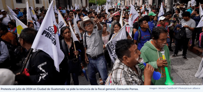 «Desde el cierre de la Comisión Internacional contra la Impunidad en Guatemala (CICIG) en 2019, el sistema de justicia fue cooptado por grupos de poder político y económico que buscan impunidad por hechos de corrupción y por crímenes del conflicto armado interno. La fiscal general, Consuelo Porras, al servicio de estos grupos, ha utilizado el Ministerio Público para obstruir investigaciones y ha perseguido a fiscales y jueces anticorrupción, periodistas, defensores de derechos humanos y autoridades indígenas”, explica a DW Denys Martínez, especialista de la organización Impunity Watch en Guatemala.