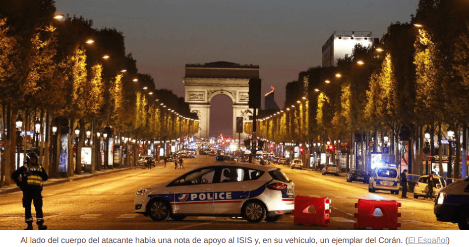 Luego del atentado en París que dejó a un policía muerto, se halló una nota cerca del cuerpo del atacante en los Campos Elíseos de París. En el manuscrito se exponía el respaldo al grupo terrorista islámico Estado Islámico (ISIS).
