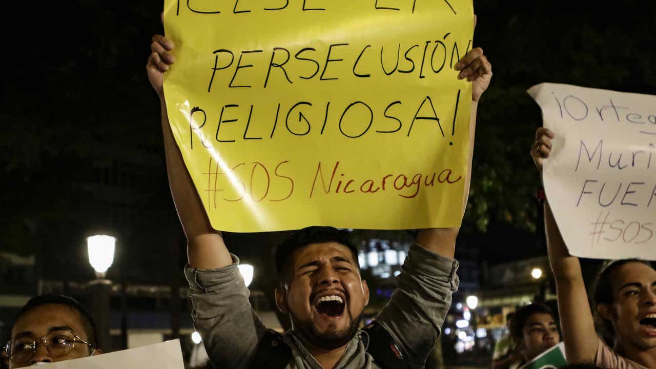 Los cirineos y Jesús apresuran el paso, voltean a ver hacia atrás, y se echan a correr… Los policías del régimen de Daniel Ortega y Rosario Murillo los persiguen muy de cerca. Las cruces que cargan y las túnicas que visten los fieles van quedando tiradas en las calles de Nindirí, una pequeña ciudad del departamento de Masaya, situada a 26 kilómetros de Managua. Es Lunes Santo y los uniformados ejecutan la orden de la pareja presidencial: prohibir a los católicos del país realizar procesiones y tradiciones de Semana Santa.
