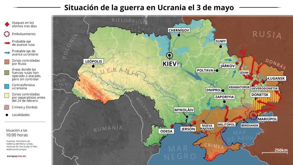 Mapa de la guerra en Ucrania | Rusia intenta avanzar en el Donbás con fuego de artillería masivo