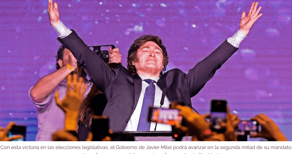 El Gobierno del presidente argentino, Javier Milei, logró una aplastante victoria sobre el kirchnerismo en las elecciones legislativas nacionales de este domingo, superando todas las expectativas. De esta manera, el oficialismo se encamina a una segunda mitad de mandato con la fortaleza que no tuvo hasta el momento para aprobar las reformas prometidas por el mandatario libertario para transformar el país.