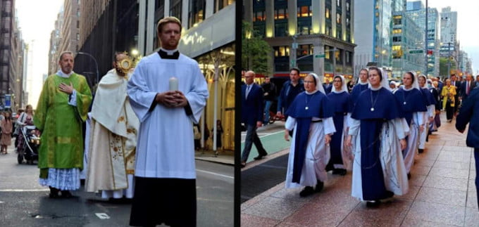 En lo que ha sido considerada como la mayor procesión eucarística realizada en la ciudad de Nueva York, miles de personas salieron a las calles en la vigilia de Pentecostés, el 27 de mayo, recitando oraciones y entonando cánticos de alabanza.