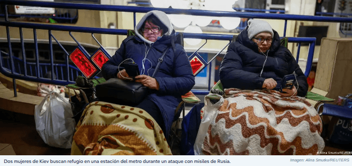 Numerosos edificios residenciales llevan semanas sin calefacción ni electricidad debido a la destrucción de infraestructuras críticas por parte del Ejército ruso. Algunos hogares en Kiev tampoco tienen agua.
