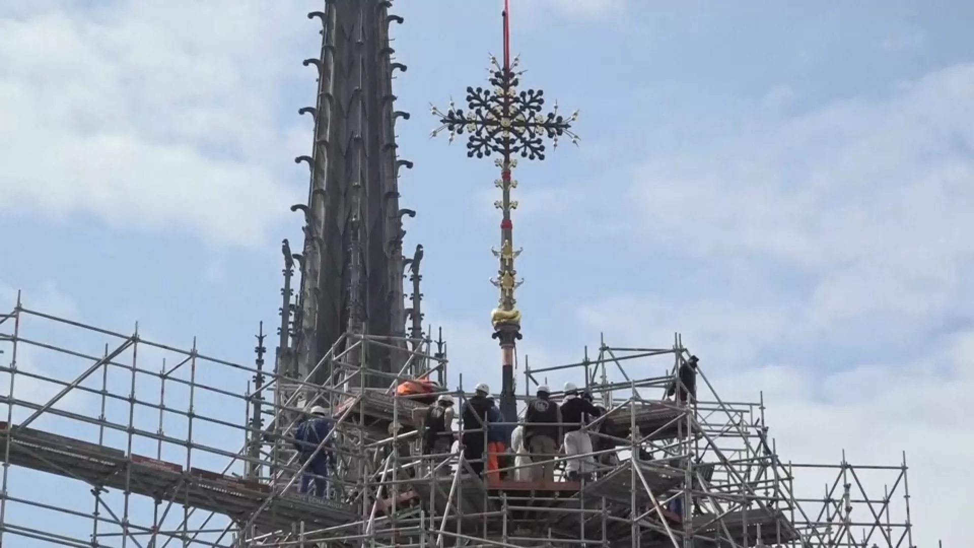 Se instaló una cruz de 12 metros de altura en la parte superior de la catedral de Notre Dame de París. Una grúa levantó la cruz del siglo XIX sobre la estructura de madera del coro de la catedral.