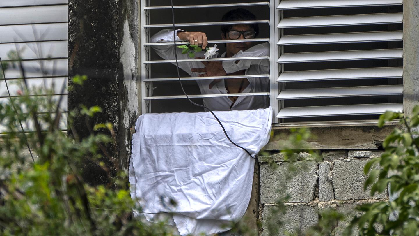 Personas afines al Gobierno rodearon la vivienda y colocaron tres grandes banderas cubanas en su fachada.