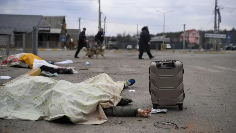 Tanto la BBC como las agencias Getty o EPA recogieron duras imágenes en la zona, entre ellas, de varios cuerpos de civiles en la carretera junto a las maletas que portaban.