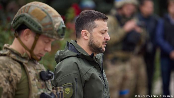 El presidente de Ucrania Volodímir Zelenski visita Izium, una de las varias localidades clave tomadas por las fuerzas ucranianas en una contraofensiva relámpago.