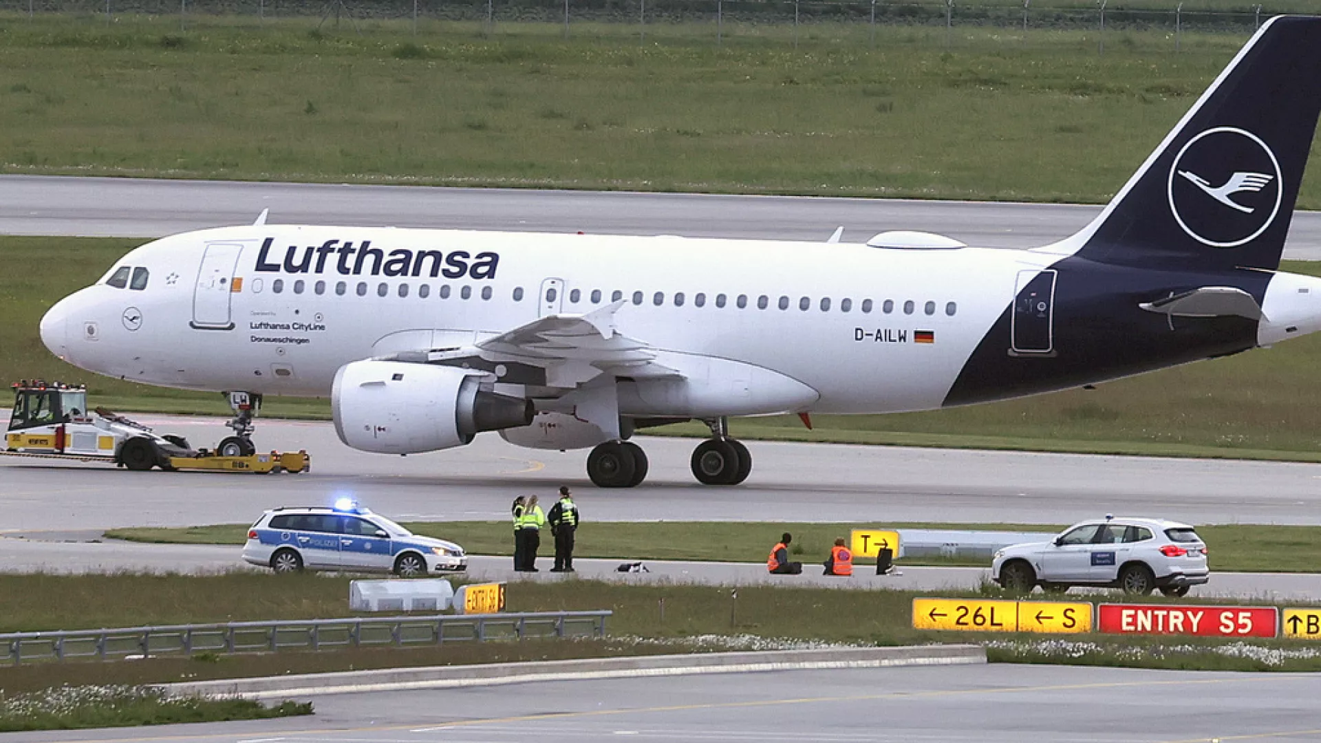 Los ecologistas entraron en las instalaciones del aeropuerto de Múnich, el segundo más grande de Alemania, el sábado por la mañana y se sentaron en las pistas de rodaje junto a las de despegue.