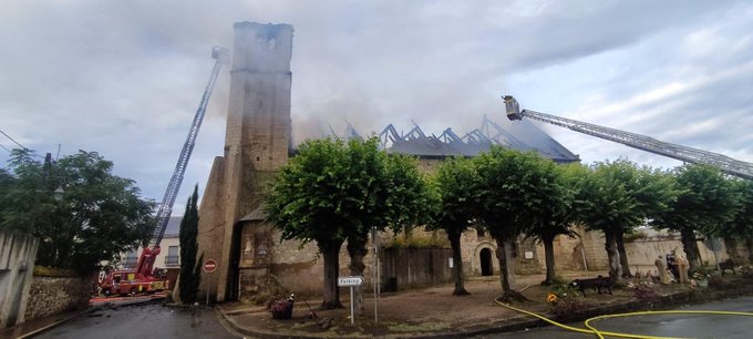 En la mañana de ayer domingo, en Descartes, al sur de la región francesa de Indre-et-Loire, se ha producido un espectáculo catastrófico. El tejado de 500 metros cuadrados de la iglesia de Saint-Georges, construída hace 900 años, se incendió y se derrumbó. El campanario ha quedado destruido, la campana se ha caído y el hastial de la iglesia está siendo vigilado por riesgo de derrumbe.