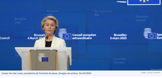 Von der Leyen aseguró que el bloque europeo está «preparado para responder» a la imposición de aranceles del 20 % por parte de Estados Unidos, y que está trabajando en nuevas medidas en respuesta.