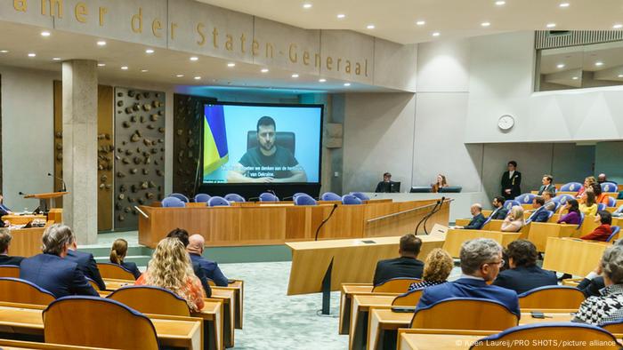 En un discurso telemático ante el Parlamento neerlandés, el presidente de Ucrania pidió que Países Bajos detenga todo el comercio con Rusia y suministre más armas a Kiev.